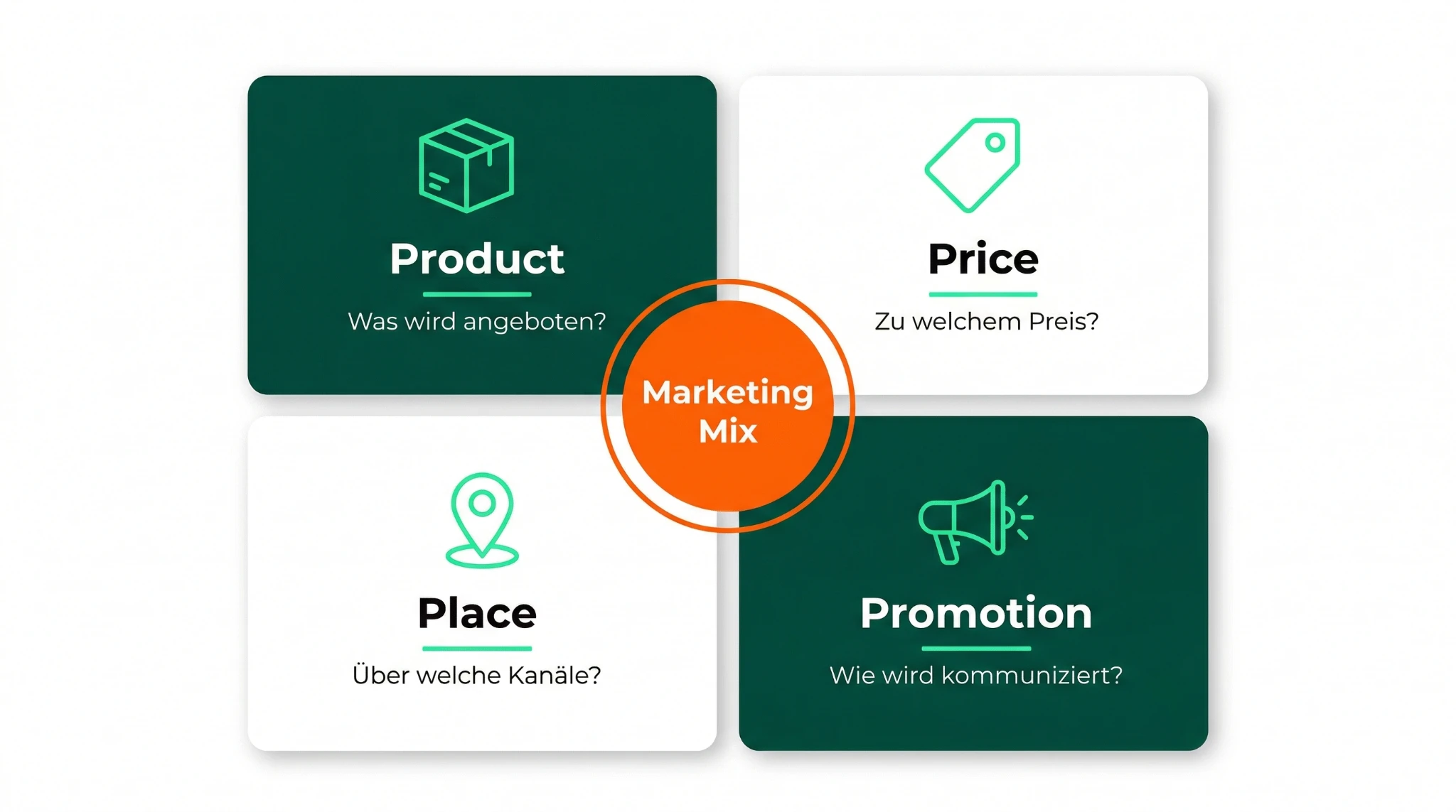 Die 4 Ps (Product, Price, Place, Promotion) wurden von Jerome McCarthy in den 1960er Jahren eingeführt. Sie fassen den Marketing-Mix auf vier steuerbare Hebel zusammen und gehören bis heute zu den meistverwendeten Frameworks in der strategischen Marketingplanung.